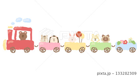 やさしいどうぶつ日和|森のどうぶつ列車イラスト(クマ機関車・森の仲間たち)