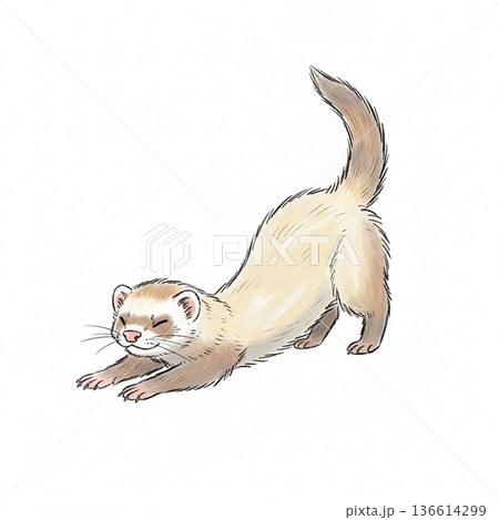 シンプルなフェレットのイラスト、手書き、筆描き、文字、
