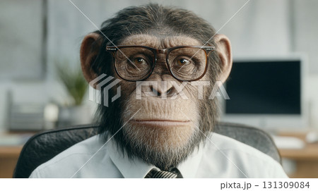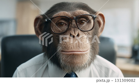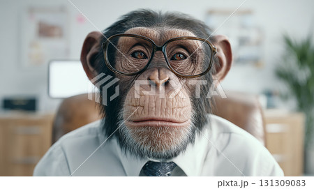 企業の知恵を象徴する、賢そうな表情の霊長類