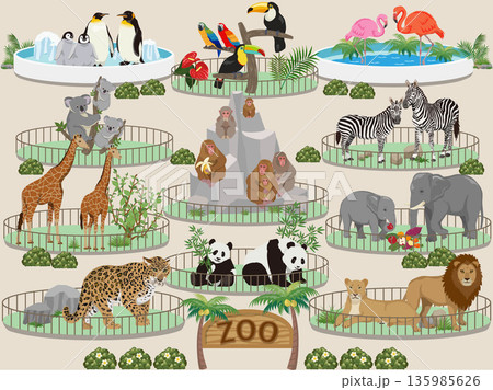 動物園にいるかわいい動物たちのイラスト