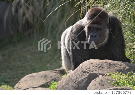 暑い夏がようやく終わって外に出るようになったゴリラ