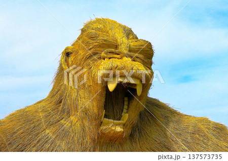 街中風景写真 巨大なゴリラ盛岡の繁華街に登場 キングコングの模倣番