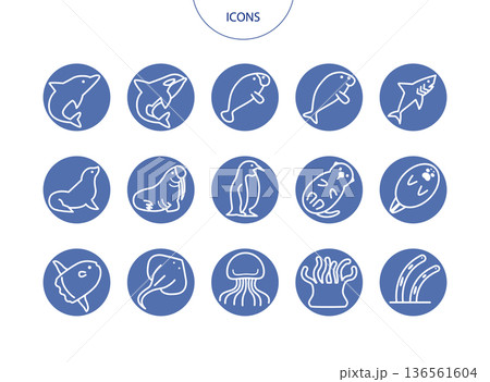 水族館の生き物 アイコン ピクトグラム ベクター イラスト セット