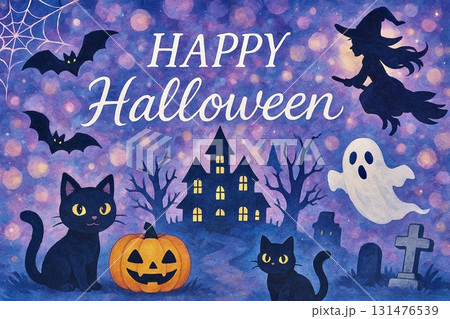 墓地とコウモリが舞う満月の夜のホーンテッドハウス