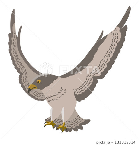 鷹の飛ぶポーズの斜め前から見たイラスト