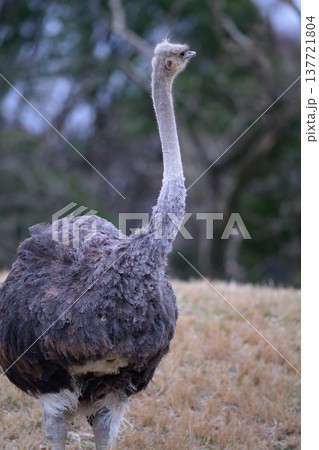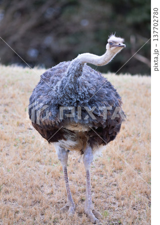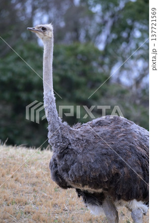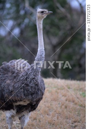 草原に佇むダチョウの雌