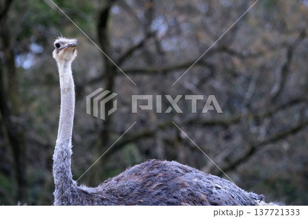 首を伸ばして遠くを見ようとするダチョウ