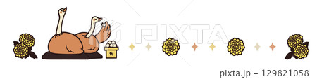 ダリアを月に見立ててお月見しているダチョウのフレームイラスト