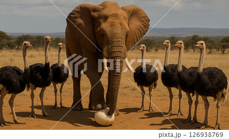 ついうっかり!?ダチョウにじっと見つめられた象の1日