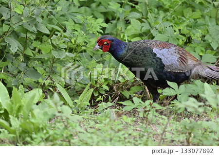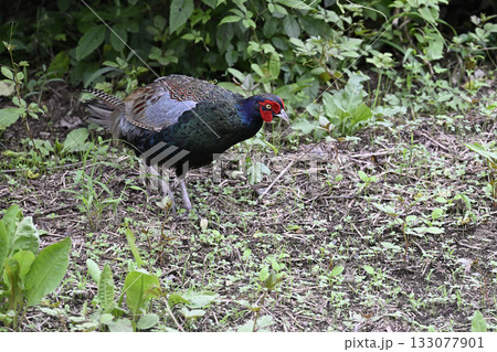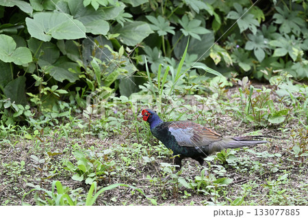 赤い顔と白黒の羽を持つキジの仲間のクローズアップ