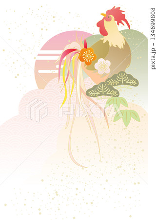 ニワトリの雄鶏の懐かしい田舎風和風手書き筆イラスト
