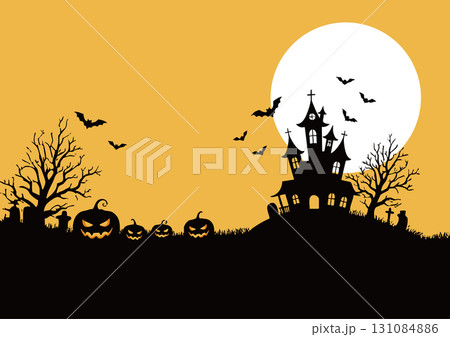 ハロウィン(城,屋敷,カボチャ,お化け,コウモリ)