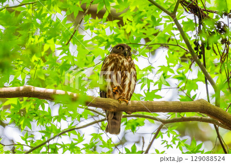 初夏の高原で見られる愛嬌のあるかわいらしい野鳥、フクロウの仲間のトラフズクのひな