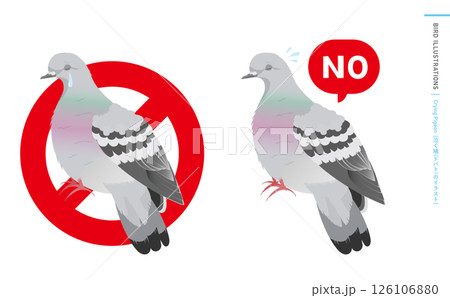 泣く鳩・キジバトの野鳥のリアルなカラーベクターイラスト:noと言うハトのエサやり禁止・注意・警告など
