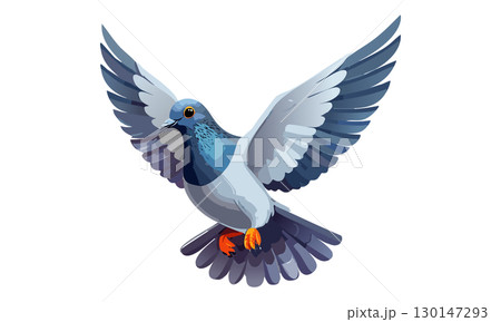 Flying dove. White grey pigeon with spread wings. Elegant and simple bird for nature, wildlife, and freedom-themed graphics. Cartoon minimalistic vector illustration