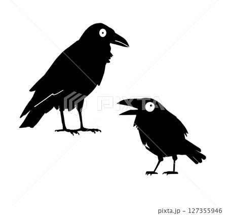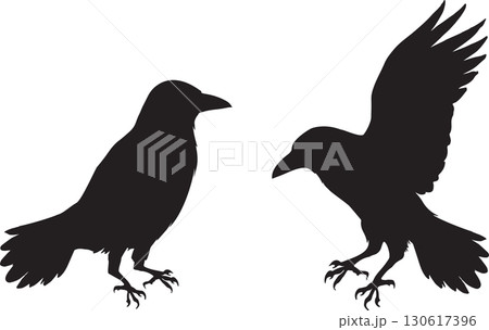 Diverse illustrations of crows in various poses, suitable for nature, spooky, or intellectual themes. Birds.