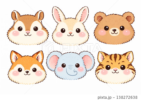 かわいい動物の顔アイコンセット 表情笑顔 主線なし