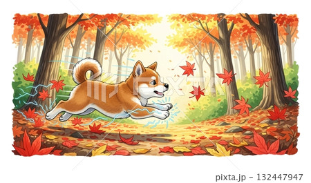 秋の紅葉の中、子柴犬と幻想的な出会い