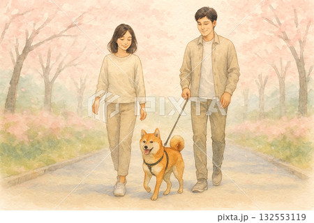 ニコニコ笑顔でお散歩を楽しんでいる柴犬です。