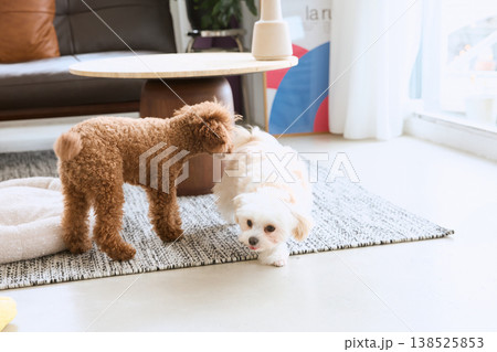 リビングで遊ぶトイプードルとマルチーズ 犬の