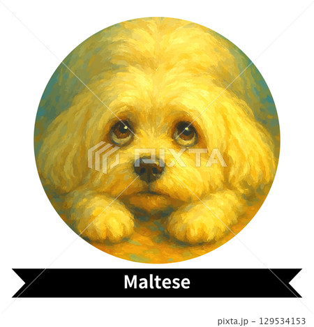 マルチーズの犬ポートレート - かわいいペットの油絵風画像