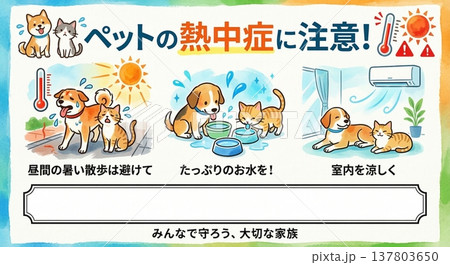 ペットの熱中症対策 啓発ポスターテンプレート 犬と猫の夏の健康管理 予防