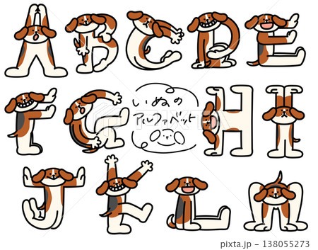 アルファベットを人文字で表現しているビーグルA〜M