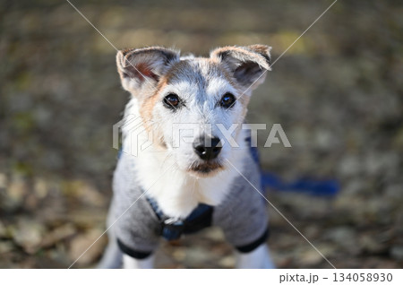 笑顔で散歩するジャックラッセルテリア(ブロークン)