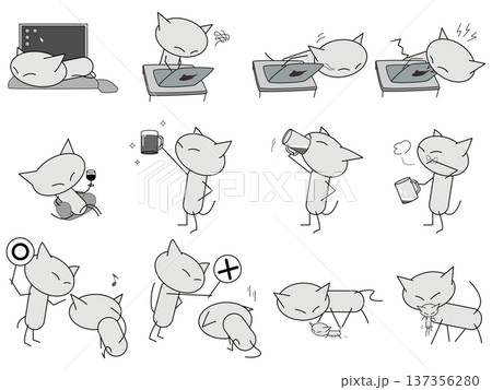 猫のポーズと行動アイコンセット かわいいペットベクターイラスト集