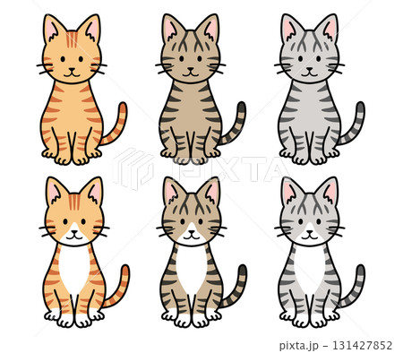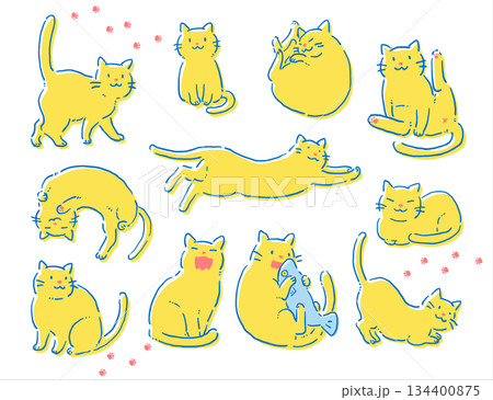 いろんな猫ちゃんの手描きイラストベクターアイコンセット