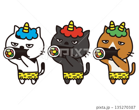 金運を招く右手の招き猫イラストセット Lucky Maneki Neko with Coin set