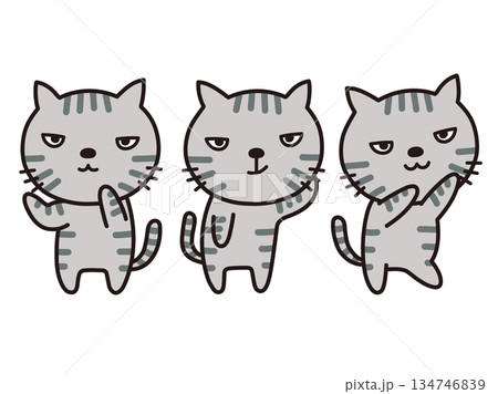 サバトラ猫の可愛いポーズと表情のイラスト11種類セット
