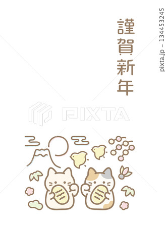 2026年午年の年賀状、招き猫、謹賀新年と添書きと干支はんこ