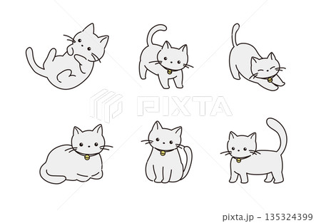 白猫の手描きイラストセット
