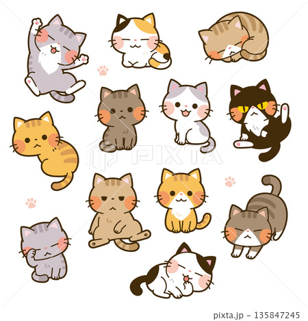 様々な表情をした猫の全身セット