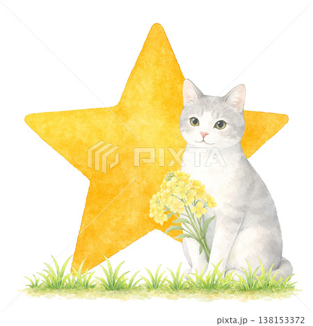 猫と星のシンプル素材 かわいいファンタジーイメージ ナチュラルデザイン 白背景