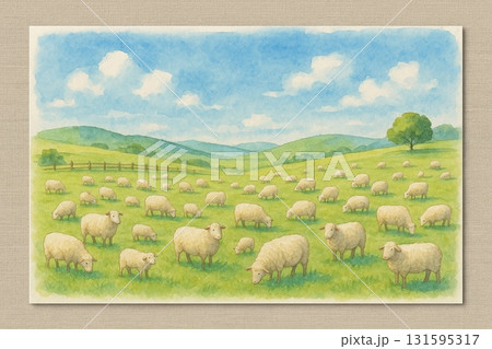 水彩画調の羊,羊のイラスト,Generative AI,AI画像