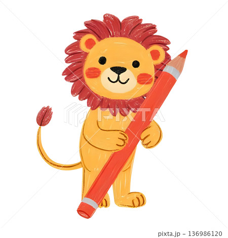 鉛筆を持って勉強の応援をするライオン