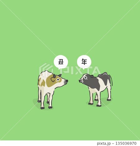 晴れ姿で笑顔な丑年のキャラクター 親子