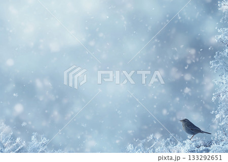 冬の小鳥と雪景色の背景 淡いボケ感が美しい冬の自然イメージ