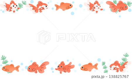 かわいい金魚の上下装飾フレーム背景ベクター|正方形対応の和風デザイン素材