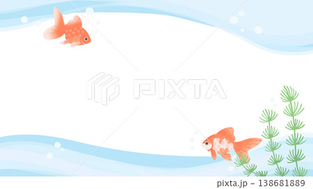 金魚が泳いでいる夏イメージのウェーブ背景素材