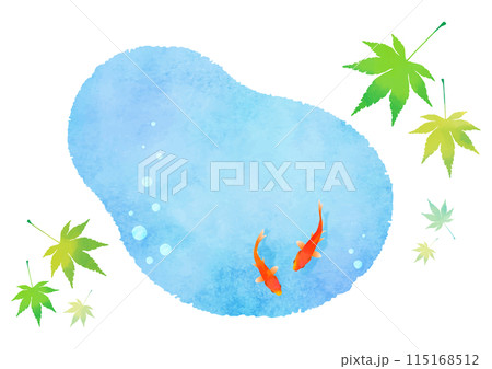 金魚モチーフ 金魚と水槽 池 夏イメージ