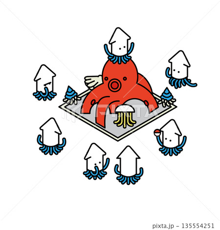 タコとイカのキャラクターをかわいく描いたイラスト素材