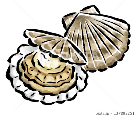 ホタテ 筆タッチ手描きイラスト