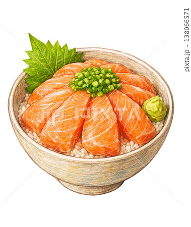 サーモン海鮮丼 重なり構図 クレヨン和食素材