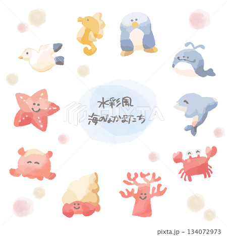 海のなかまたちシリーズ|水彩タッチイラストセット(10点)