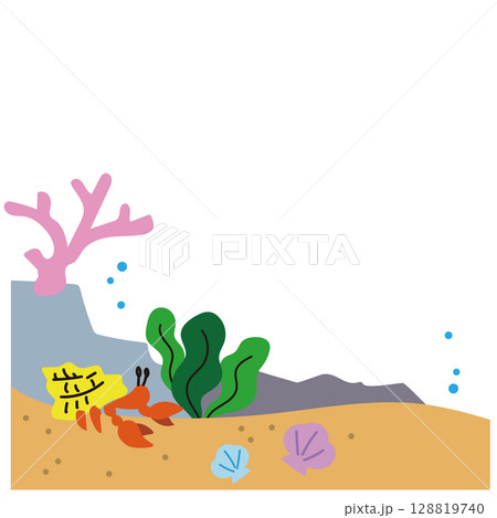 ヤドカリとサンゴ礁のかわいいイラスト装飾素材