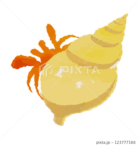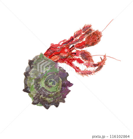 ヤドカリのベクターイラスト 版画、スタンプ、コラージュ、水彩、手描き風
