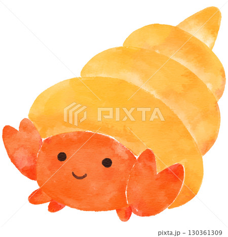 シンプルで可愛いオレンジ色のヤドカリのイラスト 水彩